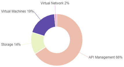 General cost structure — a doughnut chart where each segment shows the proportional value of costs per resource (resource category). The segments have labels with the component names and percentage values. The chart displays up to 10 items with the highest consumption. The rest, if present, are automatically combined into the Others group.