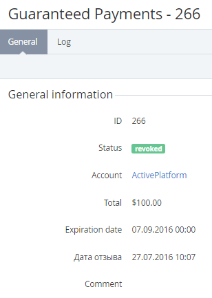 Payment's details page consists of following tabs:- General — guaranteed payment information: