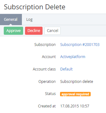 The page consists the following blocks:- Subscription — details of the subscription to which the operation refers (see Viewing and updating Subscription's details);