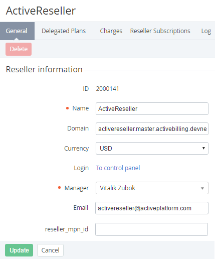 - Domain — a domain name, which is used to gain access to the ActivePlatform by the customer and reseller's staff.