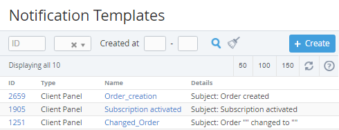 - List of Notification Templates with the following columns: