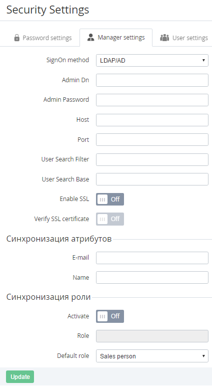 - Default role - select the role of the Manager in the ActivePlatform by default.