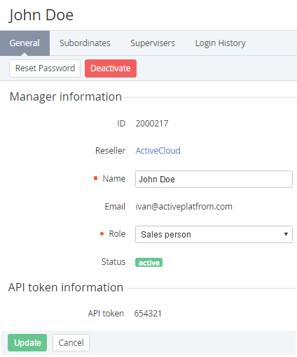 The details page consists of following tabs:- General — employee's user information (similar option are described in the Adding a Manager subsection);