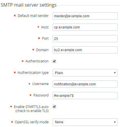 - Default mail sender - sender’s email that is used by default for sending emails;