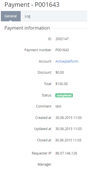 - Log — a history of payment's changes (see Viewing the Event Log).