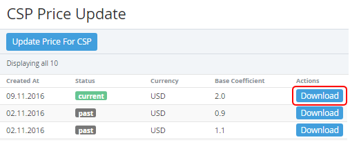 To download an uploaded file with prices of the Plan Resource, which are provided by Microsoft CSP Programm:
