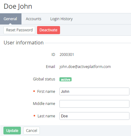 - Global Status — a user's status for all Accounts, to which it was linked: active or inactive;