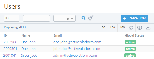 - Global Status — user's status for all Accounts, to which it was linked: active or inactive.