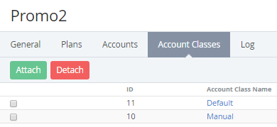 - Click the Attach button. The list of attached Account Classes will be displayed on the screen (see Viewing attached Account Classes).
