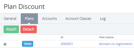 - Select the Discount on the Promo Code or Account type, by clicking on the link in the ID or Name column.