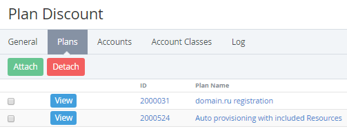 The ID and Name links allow going to the Plan details page (see Viewing and Updating a Plan).