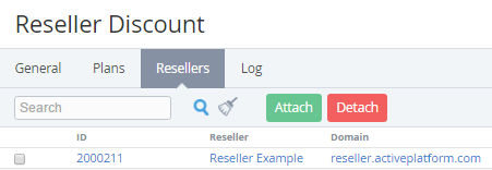 - Go to the Resellers tab. The Workspace displays the list of attached Resellers.