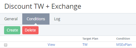 - Target Plan — a name of the Plan, for which the Discount will be applied if the condition is fulfilled.