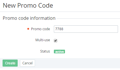 - Click Create. The new Promo Code will be displayed on the List of Promo Codes (see Viewing the List of Promo Codes).