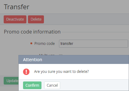 - Click Confirm in the pop-up window. The Promo Code will be deleted.