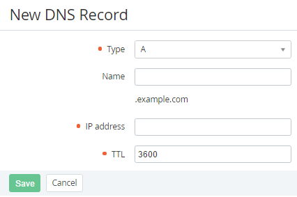 Click Save. Added DNS record will be displayed on the screen.