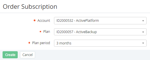 - Select required Account in the Account list on the Order Subscription page (see Managing Accounts).