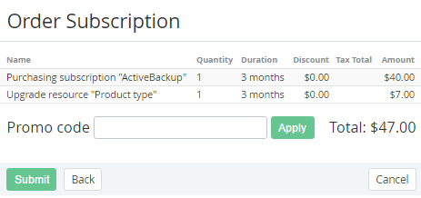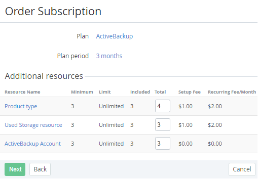 - Look through the order details and click Next. The Subscription will be ordered.