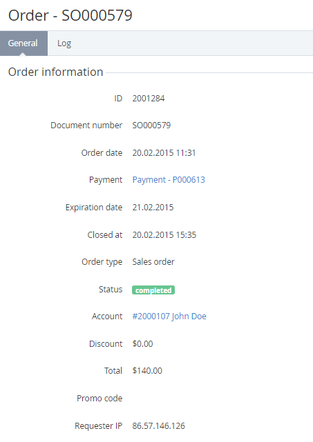 - Requester IP - a user IP address, which created the order.