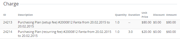 - Charge - the List of Charges which were created for the Order: