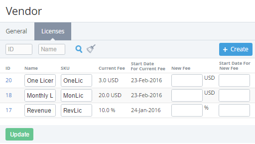 - Start Date For New Fee - a start date of using the new license fee.