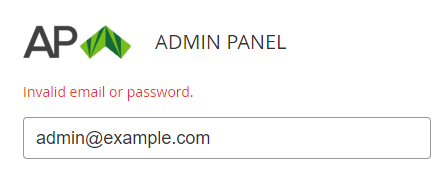 - If the "Invalid email or password" error message occurs, verify the creation of the Reseller's Manager (see Creating Reseller's manager).