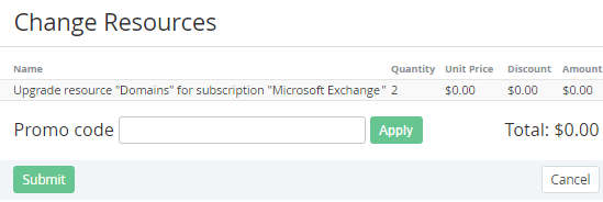 - Look through the order details and click Submit. The Subscription has been upgraded.