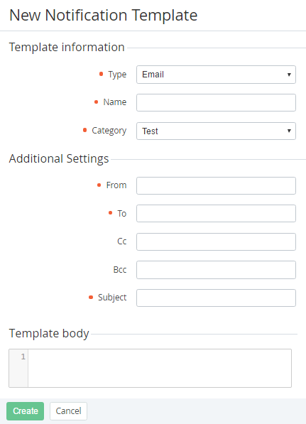 - In the Category list, select a Notification Category, which has been created earlier (see Managing Notification Categories).