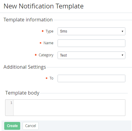 - Click Create. The new SMS Template will be created and displayed in the List of Notification Templates (see Viewing the List of Notification Templates).