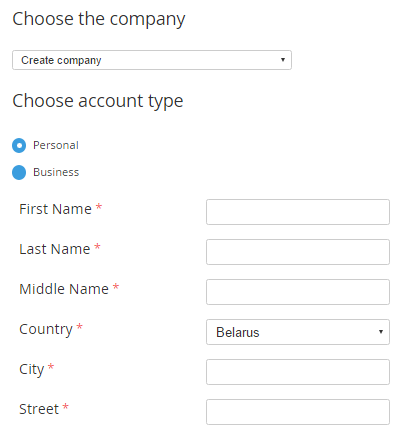 - Account Form - the template of the new Account creation page in the Customer Control Panel.