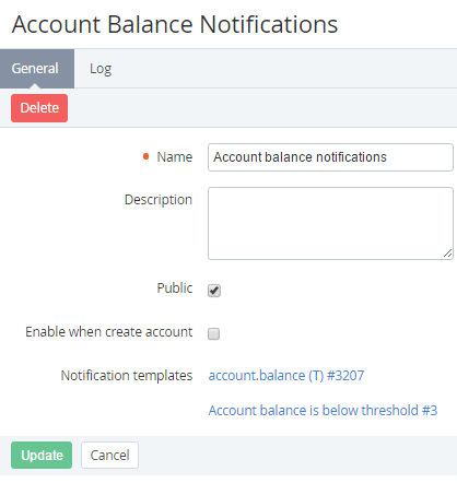 - Enable when create account — you can set checkbox to turn on sending the notifications from this group for all new created Accounts by default (if it's Yes);