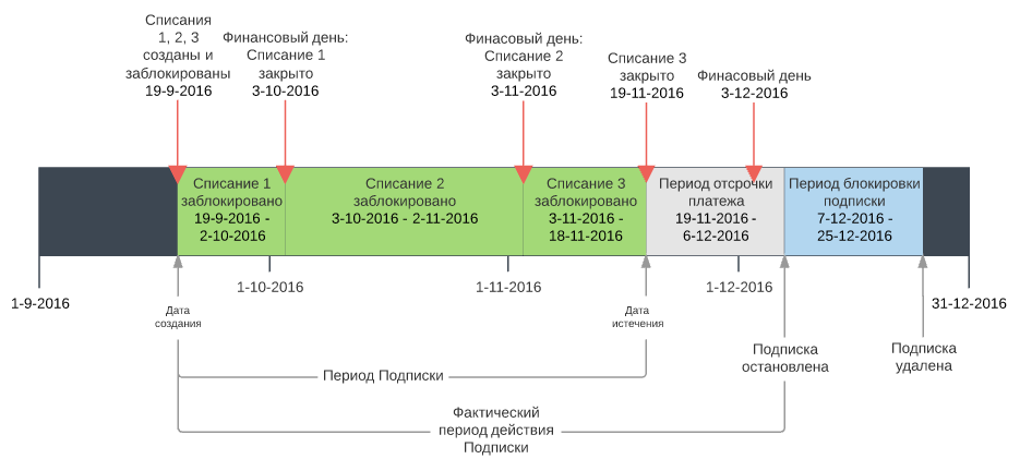 - Списание 3: период от второго Финансового дня до Даты истечения подписки (3.11.2016 - 18.11.2016);