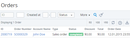- Order Number — a number of the order (e.g. SO000329), which is configured in the System settings (see System Settings).