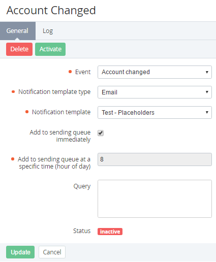 The Event Handler details page consists of following tabs:- General — general information about Event Handler (see Creating an Event Handler).
