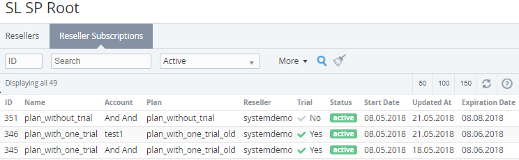 - The Manager column is replaced by the Reseller column, in which the name of the Reseller, who sold the Subscription, is displayed.