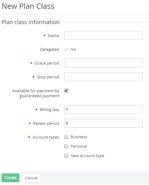 To create a new Plan Class: