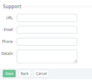 - In the Phone field, enter the phone number of Product support;