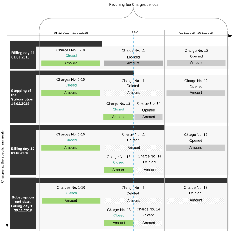 - In each subsequent Billing day, if the Subscription was not activated, the Charge for the previous Billing period is deleted. The remaining Charges don't change.