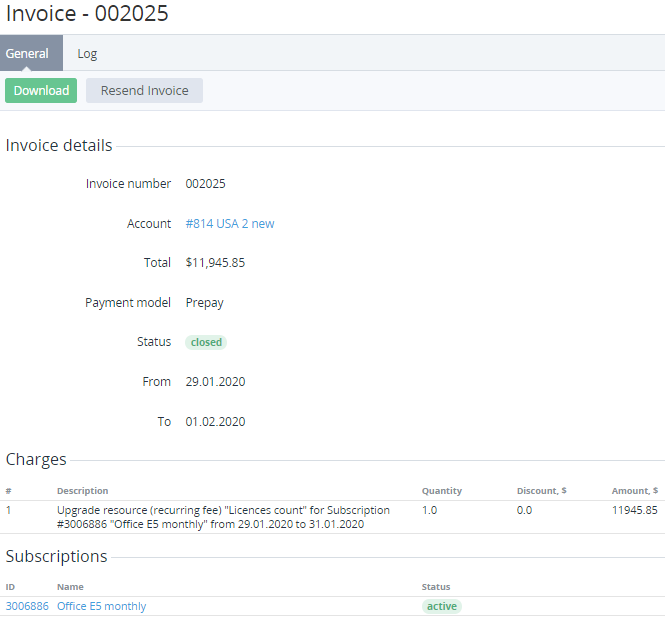 - Subscriptions — table that contains the list of Subscriptions that have Charges, which were closed in the previous Billing period: