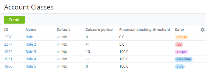 - Subzero period — number of days, during which the Account balance can be negative without moving to the Credit hold status (see Credit hold of the Account) if the Account Balance was less or equal Financial blocking threshold. The "-1" value refers to the endless period.