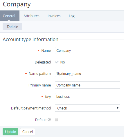 Delegated Account Types are read-only. For delegated Account Types, you can change only the following attributes: