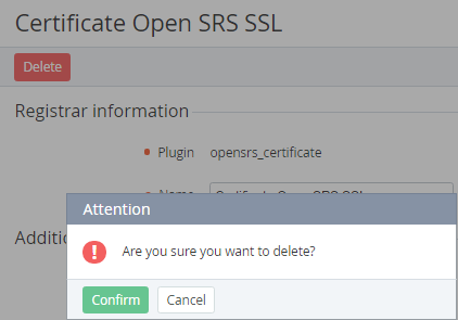 - Click Confirm in the pop-up window. The Certificate Reseller will be deleted.