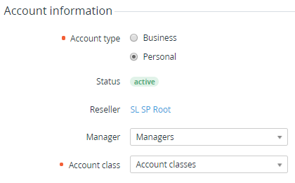 - In the Account class list, select the required class of Accounts (for more information, see Account class).