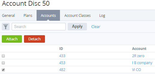 - Click Detach. The updated list of attached Accounts is displayed.