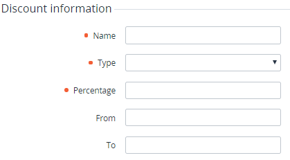 - In the Name field, enter the Discount name.