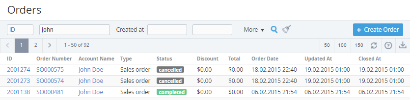 - Order Number — a number of the Order (e.g. SO000329), which is configured in the System settings (see System Settings).