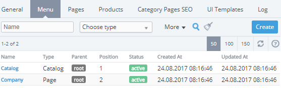 Catalog — Menu item that is created automatically using Products (see Managing SEO information of a Product page) and Categories (see Managing SEO information of a Category page) data, imported from ActivePlatform (see Managing Synchronization of data).