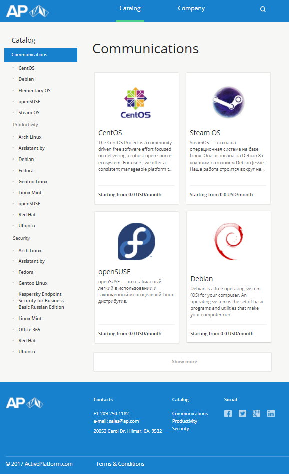 - Cards of Products with the smaller monthly cost of the Plans are displayed on the top of the list. Trial periods are not taken into account.