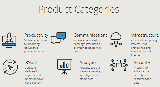 - Product Categories —the section with Category Cards arranged in tiled format. Each Category Card has: