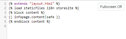 - If necessary, switch to the full-screen mode by clicking the Fullscreen On button at the top right corner of the Template body section.